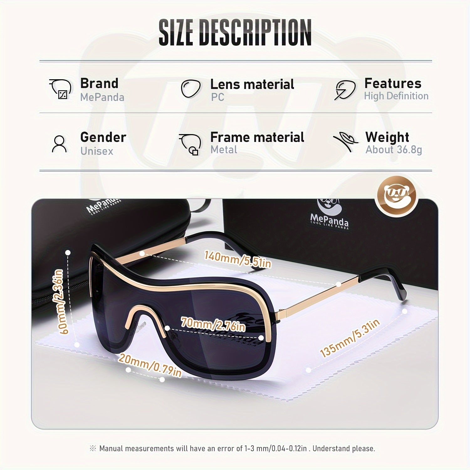 MePanda Men's All-in-One Metal Cool Sunglasses, Trendy Hip Hop Sunglasses, Ideal choice for Gifts